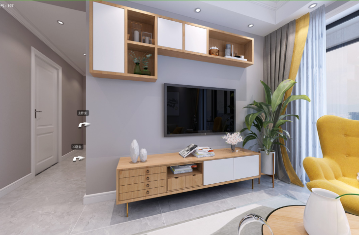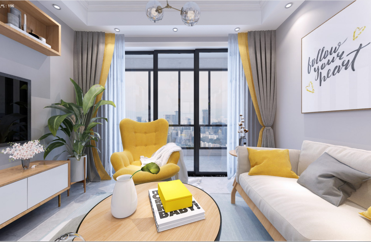 心向庄园,北欧风格,本案以原木色和灰色为主,黄色为辅,通过冷色和暖色的对比,让空间变得更加的有层次感。