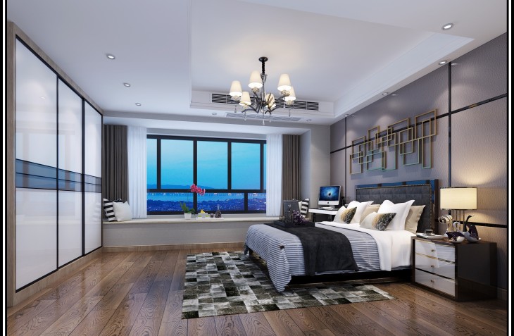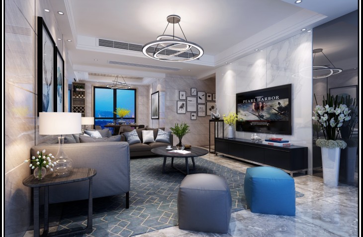 设计说明:本案是后现代黑白灰简约风格,或白或灰的色 调,让整个空间显得既沉稳而又不失时尚。白色的墙面、白色的家具和沙发,让客厅看上去格外简洁开阔。无须华丽的装饰,无须贵重的家具,简单的颜色搭配带来的明媚感将整个客厅的拘谨一扫而空。极简的黑与白,塑造优雅的同时又具有现代设计感。黑色可以和无彩色系的白、灰及有彩色系的任何色都能组合搭配,营造出千变万化的不同色彩情调。