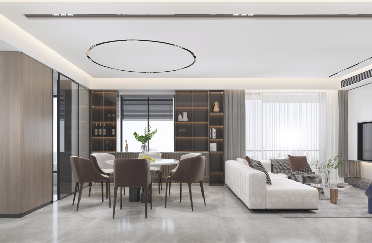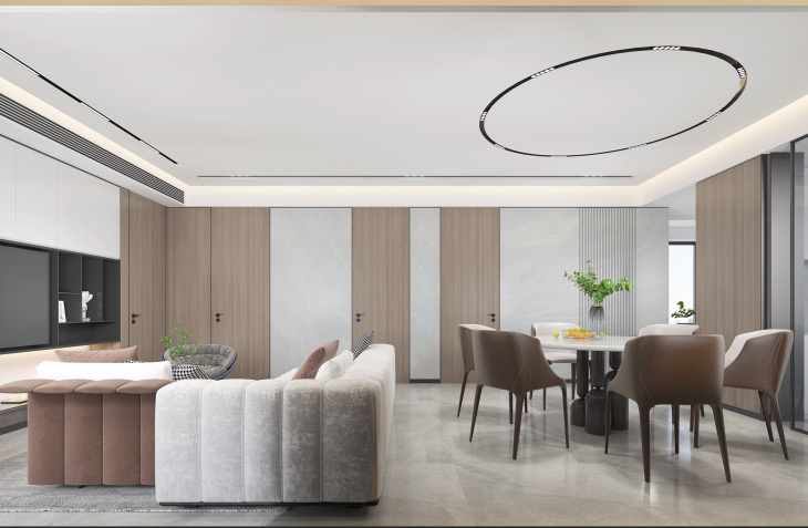 设计说明:项目的主人公是一对年轻的小夫妻,两个可爱的小孩子,户主喜欢现代极简风格,因其简约,但是不仅 是实用性的体现,还是现代、时尚感的体现,这样 的设计符合现代人对于室内简约、清新环境的需 求,也同样符合现代人的生活品味,有限的留白,无限的创意。在整个空间,人造光、自然光与白无缝融合,凝结成让人停驻的景,艺术与生活共生。 雪花白的大理石与黑色拉丝不锈钢的搭配泾渭分 明,白的雪白,黑的深邃,对比鲜明。
