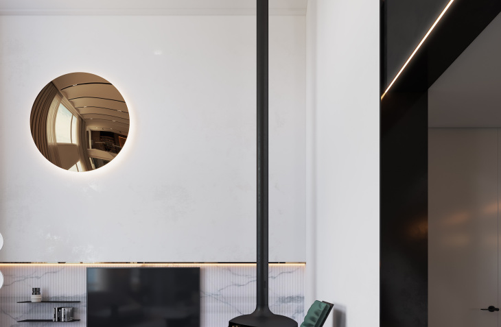 设计说明:本案主人公为年轻夫妻,希望家里简洁温馨舒 适,干净实用,改造中根据业主家庭成员不同的生 活喜好定制,各有空间。我们改善了原厨房与客餐 厅的动线,格局延伸通透,而中厨可开可合,与客 厅紧密串联着美好日常。空间重组,增强动线,格 局上注重自然光引入,实现互动式生活空间 家是艺术的结合总是给人温馨之感一个独特与灵 气的艺术品静静的观赏,总会带给你生命的力量你 是不是也被这种独立的个性而感染,创意的摆件, 代表业主对高品质生活的重视。 v客厅的云朵吊灯,端庄高贵,大方简约,营造出 种温馨的感觉 通过现代材料的重新组合,以低调的姿态暗示了现 代生活的重点一简单、舒适。 ⅴ客厅整个墙面空间都是大面积留白,局部搭配木 饰面,既温暖又年轻时尚。简单到极致为追求 任何一种关于美的定义,少了极致,都是不完整 的。极致,在某些时候,又是一种设计的气质,或 优雅、或高贵、或知性、或时尚、或艺术。 墙面与地面遥相呼应,演绎多种材质的碰撞,光 与影的错落交叉。茶几上的一株融入富有生机的绿 植,视觉上更显自然柔和,也成为室内最美好的点 缀。